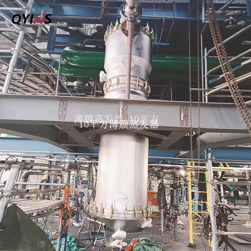 薄膜蒸發(fā)器(Thin film evaporator)是一種蒸發(fā)器的類型,按照成膜原因及流動方向不同,可分為升膜蒸發(fā)器、降膜蒸發(fā)器、刮膜蒸發(fā)器三種類型。特點是物料液體沿加熱管壁呈膜狀流動而進行傳熱和蒸發(fā),優(yōu)點是傳熱效率高,蒸發(fā)速度快,物料停留時間短,特別適合熱敏性物質的蒸發(fā)。