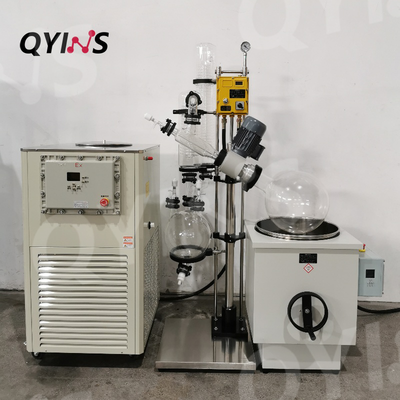 定制雙冷凝器款防爆旋轉(zhuǎn)蒸發(fā)儀 EX QYRE-20L(容量可定制1~100L) 采用大容量,大口徑旋轉(zhuǎn)蒸發(fā)瓶,蒸發(fā)面積大,在減壓下置于水浴中,邊旋轉(zhuǎn)邊加熱,使溶液擴(kuò)散蒸發(fā) 廣泛應(yīng)用于濃縮、干燥、提取等 化工、醫(yī)藥、食品常用設(shè)備 可配套真空泵、低溫冷卻液循環(huán)泵等