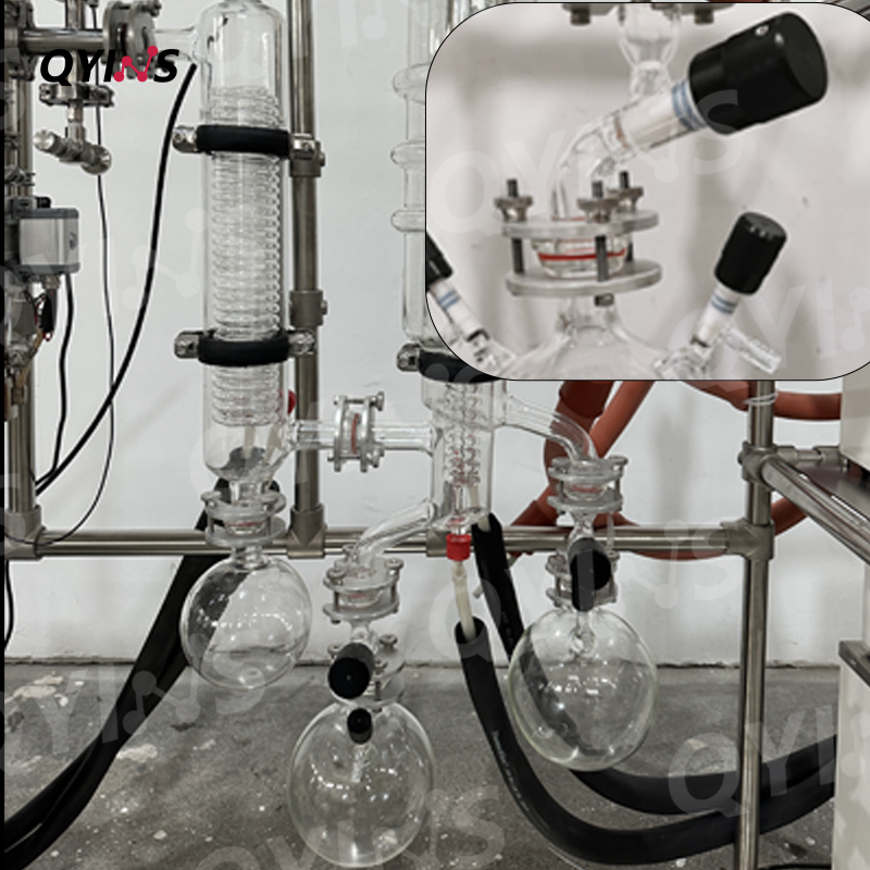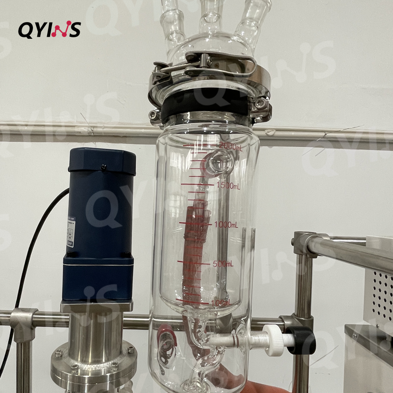 高透明度和高同心度,內置蛇形玻璃盤管冷凝器配套316不銹鋼攪拌框,結合四氟刮條