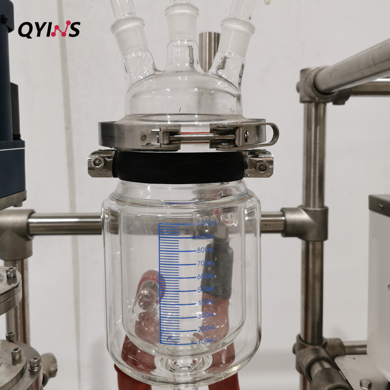 高同心度和高透明度,內置蛇形玻璃盤管冷凝器配套316不銹鋼攪拌框,結合四氟刮條