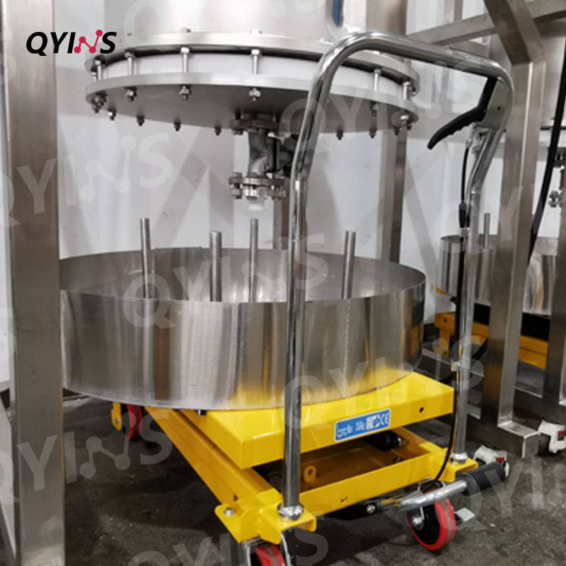 可移動升降接料小車+不銹鋼托盤,輔助使用人員快速安裝或拆卸過濾裝置,便于收集固狀粉狀物料。