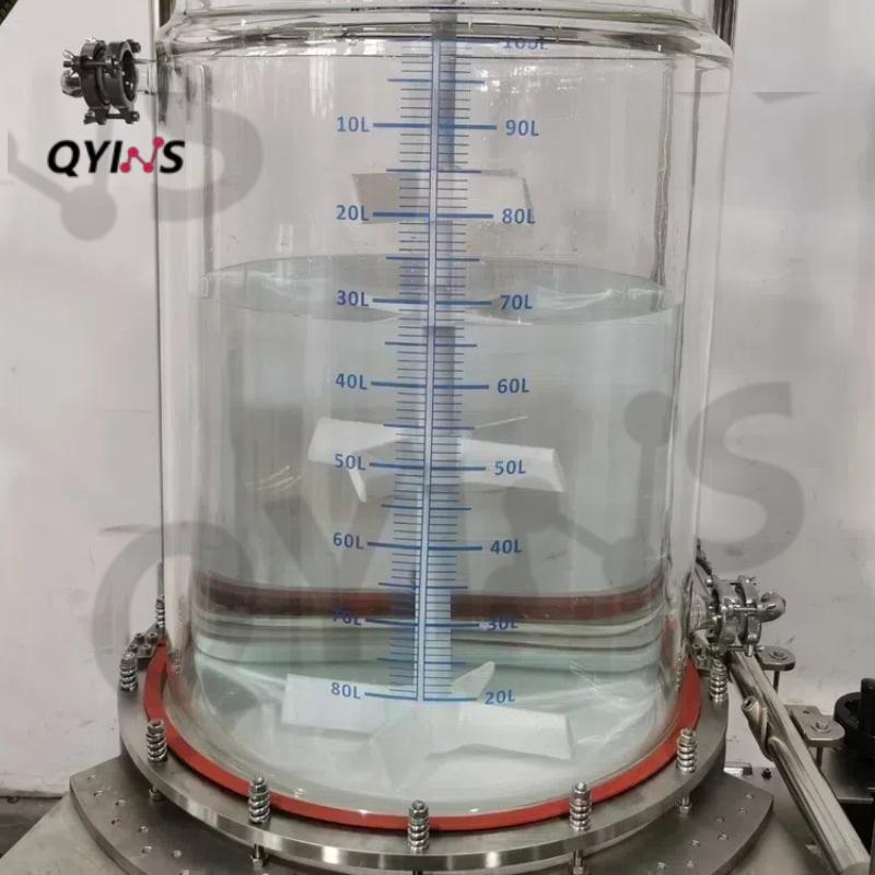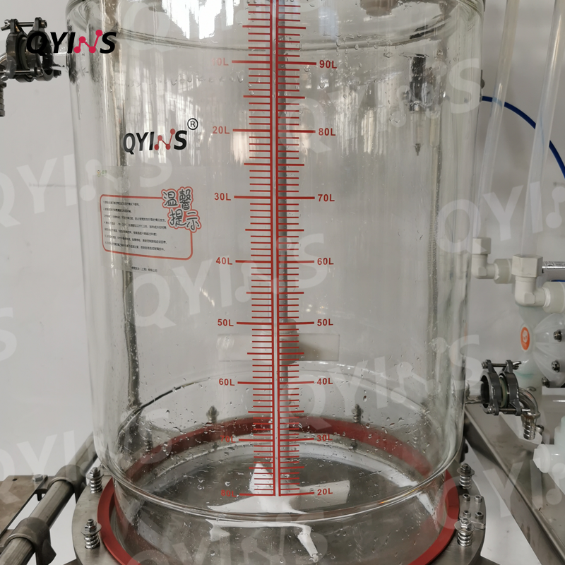 2、直通玻璃釜體上下法蘭大口徑設計,法蘭直徑495mm(市面常規(guī)固相釜直徑340mm),加快過濾速率。
