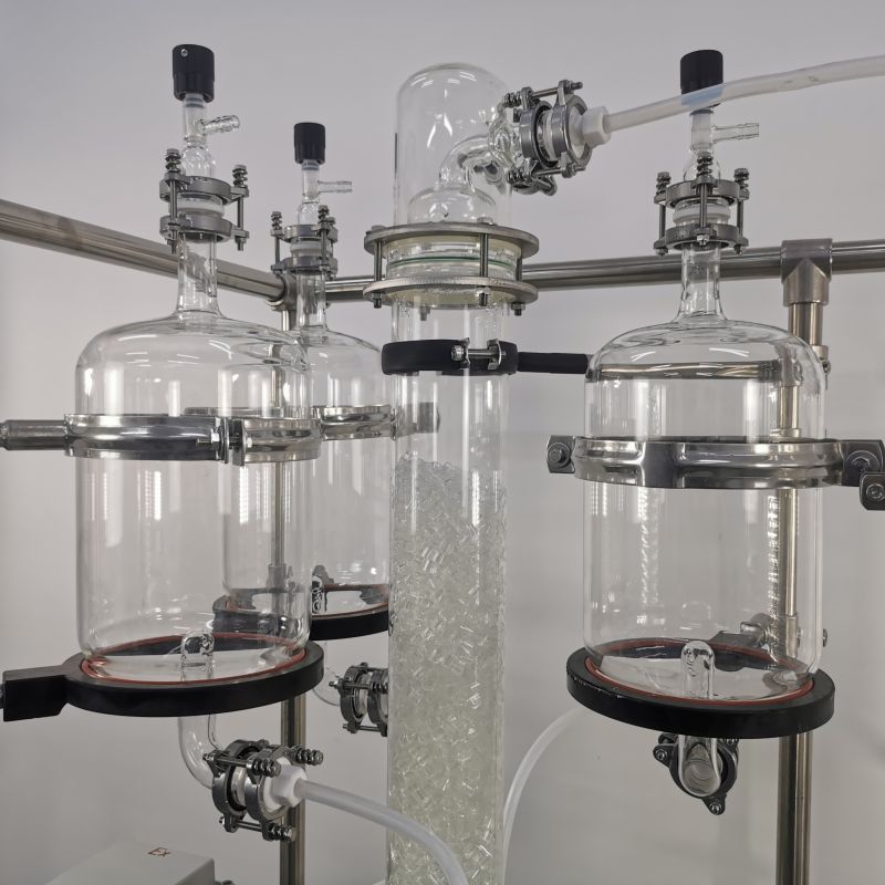 本款防爆尾氣吸收,配備三個防倒吸罐。磁力循環(huán)泵將吸收液從圓底燒瓶打入噴淋頭,從頂部落下。廢氣反方向進入吸收柱,兩者充分接觸后,快速達成凈化。