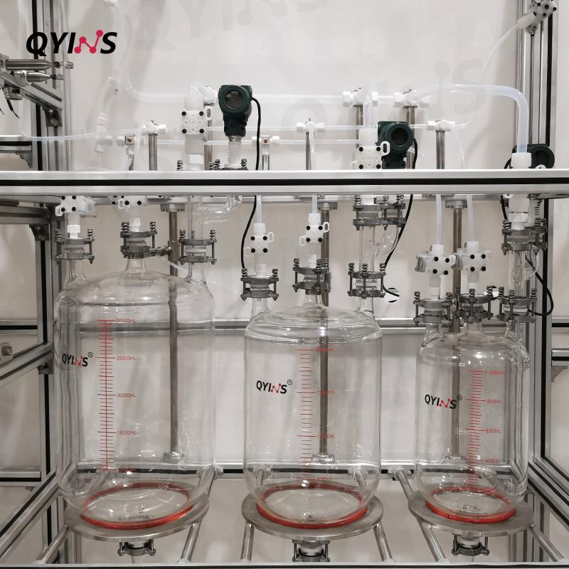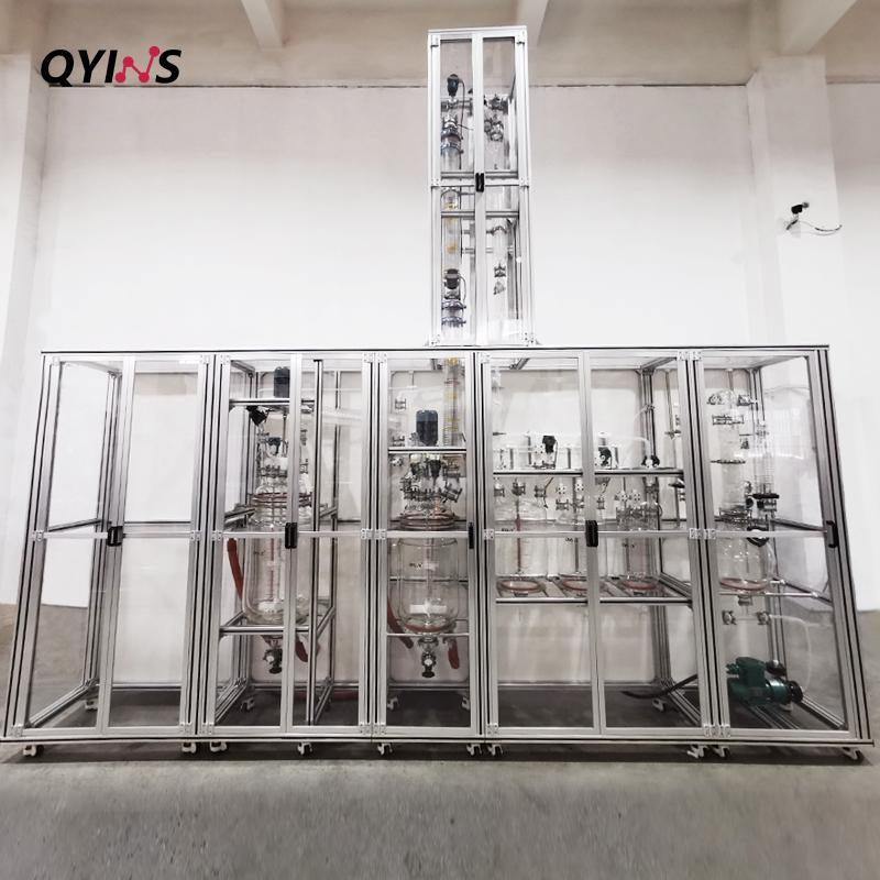 實驗室精餾塔整體解決方案,包含預反應釜,精餾釜,尾氣吸收及配套控溫和真空系統,整體撬裝,此套系統PLC控制,在線記錄真空度;控溫溫度的控制和顯示,顯示實驗參數并自動產生時間曲線,實驗過程中,可依據實驗結果,反向推測實驗條件。具有過流、過載、溫度異常等報警裝置。